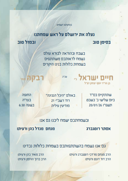 Please partner with me on this wonderful Mitzvah of Tzedakah and together let's raise the funds to ease a Chosson a Yasom's pain.