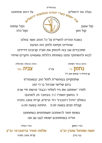 The chosson, Nachman Stern's father passed away seventeen years ago after a serious illness. The widow was left to raise two young orphans, with a third born after her husband's passing. Her son's wedding day now approaches, yet she lacks the means to cover the large expenses. She needs our help to ensure the chosson can get married with the respect he deserves.